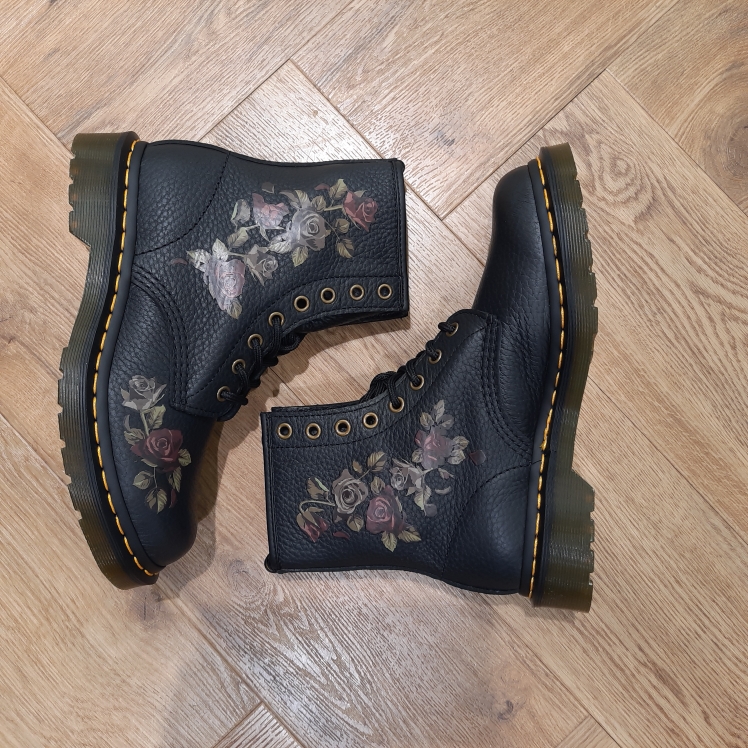 Cette nouvelle version de nos boots 1460 à 8 œillets combine roses fanées et cuir Classic Tumbled Nappa texturé. D'abord, ces chaussures sont dotées de finitions en cuir vieilli pour accentuer l'allure vintage. Puis, elles reposent sur notre semelle Doc's renforcée de nos surpiqûres jaunes signature.