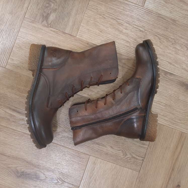 Découvrez les bottines à lacets pour femme Felmini Felipan Marron, une paire alliant praticité et confort avec une touche de style intemporel. Tout d'abord, elles sont confectionnées en cuir marron de qualité. En effet, elles garantissent une protection optimale contre le froid grâce à leur doublure intérieure en cuir qui absorbe l’humidité et prévient les frottements inconfortables. De plus, sa semelle en caoutchouc est appréciée pour sa durabilité. Celle ci offre une résistance élevée à l'abrasion et assure une excellente accroche, vous permettant de marcher en toute confiance sur différents types de surfaces. Pour finir, ne manquez pas la fermeture éclair latérale qui facilite l'enfilage tout en apportant une touche pratique à votre quotidien.
