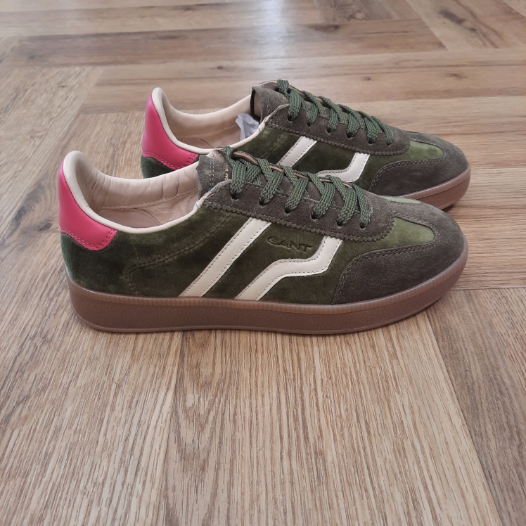 La chaussure Gant Cuzima Olive est une paire de baskets d'inspiration rétro, qui se porte en toute saison. Tout d'abord, elles sont dotées d'une tige en cuir de qualité supérieure. De plus, elles arborent des finitions de couleur contrastante au niveau du bout, du talon et sur le côté. Puis, sa fine semelle extérieure en caoutchouc et la doublure en coton éponge apportent un style vintage à l'ensemble.