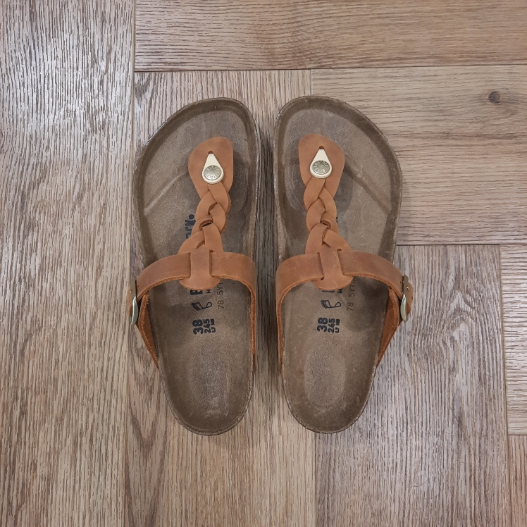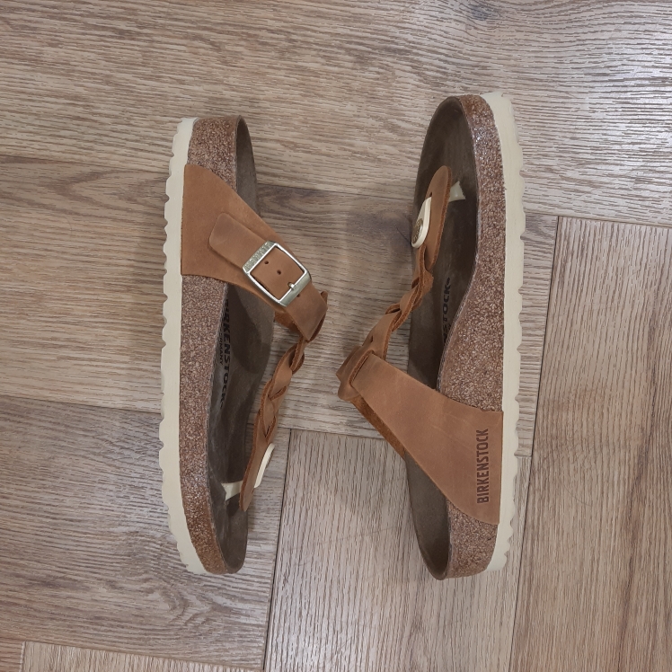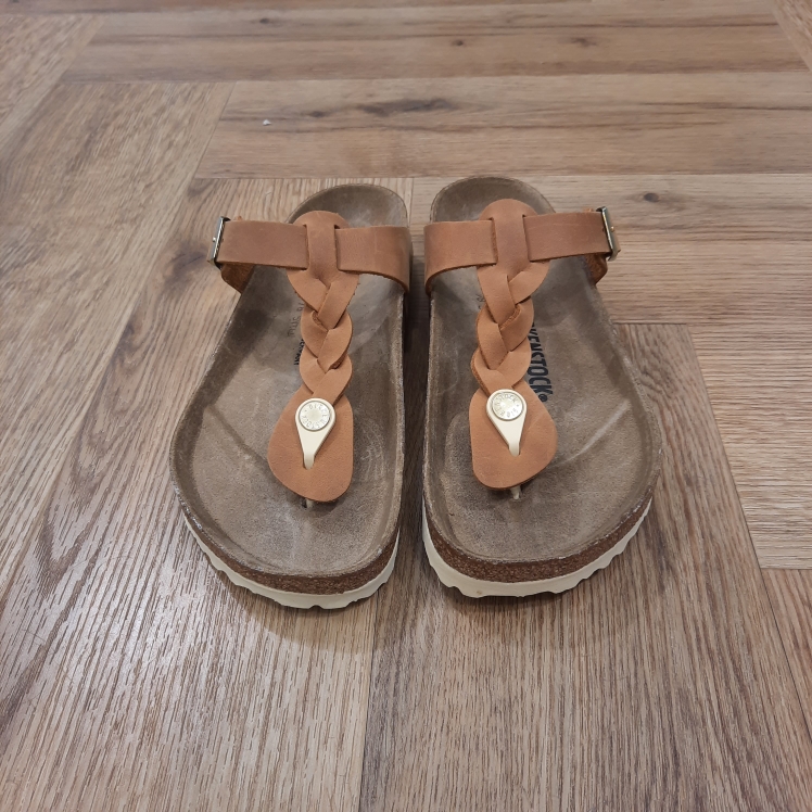 Le modèle Gizeh Braided Cognac, un des grands classiques de la marque, affiche un design minimaliste tendance, tout en offrant un maintien parfait. Cette chaussure arbore ici un détail particulier : des brides tressées, qui se marient parfaitement à un style bohème actuel. Côté composition, sa tige a été confectionnée dans un cuir nubuck huilé particulièrement épais, à bords bruts.