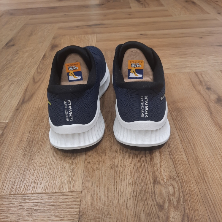 Enfilez vos chaussures Skechers Hands Free Slip-ins® Go Walk Navy - Master et profitez d'un confort et d'un style exceptionnels. Conçues avec notre coussinet de talon Heel Pillow®, ces chaussures vegan sans lacets sont dotées d'une tige en mesh technique, de lacets extensibles sans nœud, d'une semelle intérieure Skechers Air-Cooled Memory Foam® et d'une semelle intermédiaire légère en mousse