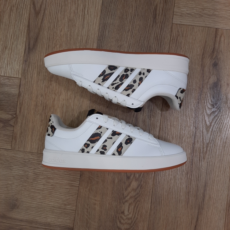 Cette chaussure Adidas Grand Court Beige Léopard ornée des 3 bandes classiques affiche un look épuré. En effet, l’amorti Cloudfoam Comfort offre un confort ultime. Porte-la avec l'un de tes pantalons préférés, car elle t'emmènera partout. De plus, sa tige est confectionnée en matériaux recyclés à hauteur de 50 % minimum.