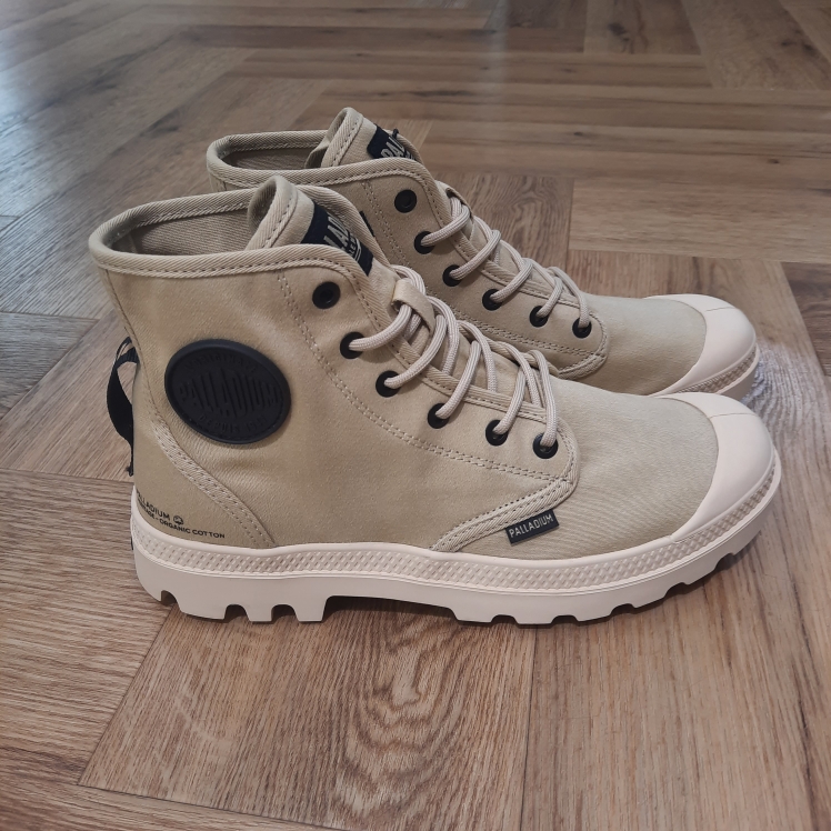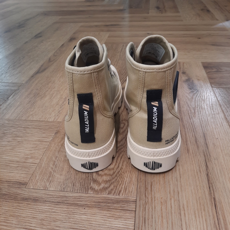 Palladium est une marque française créée en 1920. À l'origine, son activité est bien différente de celle que l'on connait aujourd'hui : Palladium fabriquait des pneus pour l'aviation. La société fournissait alors la plupart des flottes aériennes européennes grâce à un procédé industriel unique : la vulcanisation du caoutchouc et de la toile. Au lendemain de la Seconde Guerre Mondiale, Palladium cesse peu à peu cette activité. En 1947, la société ouvre une usine à Pont de Cheruy, dans l'Isère, où elle commence à produire des chaussures selon le même principe de vulcanisation. Chaussures qui se révéleront tout aussi solides ! Le modèle emblématique de la marque est le "Pampa" qui équipe notamment la légion étrangère française