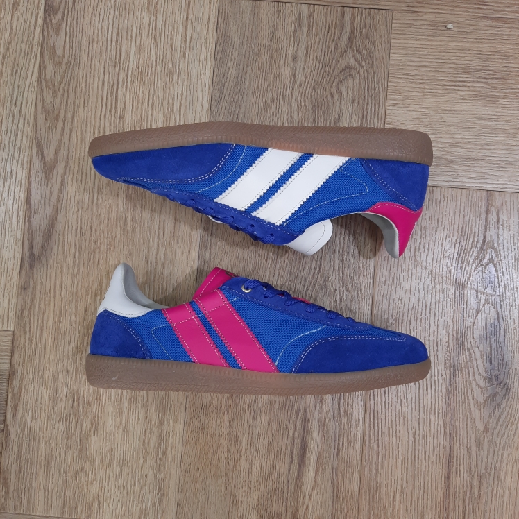 Les Pulse Flash Kiss sont des sneakers asymétriques de la collection Caval qui fusionnent un look sportswear à l'élégance des paires de handball des années 90. Chaque détail, du bout golf, à la plaque perforée, en passant par les découpes croquet, le cousu Strobel, le lacet tricot et les semelles en gomme affûtées, évoque un style rétro-preppy sophistiqué. Souples et flexibles, elles promettent confort et allure pour toutes vos tenues. Avec 7 différences uniques à découvrir, les Pulse ne sont pas de simples sneakers, c'est un bond en avant pour votre style au quotidien.
